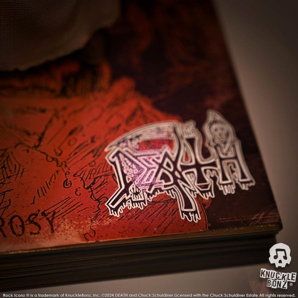 Die Statue ist offiziell mit dem Chuck Schuldiner Estate lizenziert und stellt damit ein besonderes Sammlerstück für Fans dar.