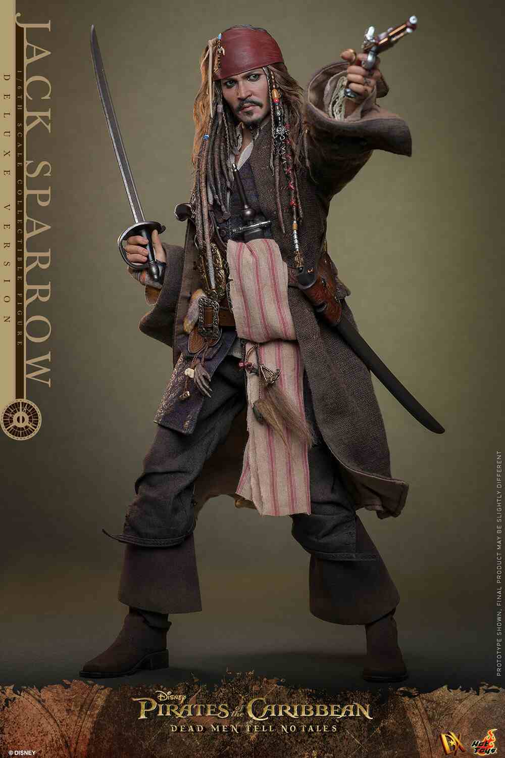 - Authentic and detailed likeness of Johnny Depp as Captain Jack Sparrow in Pirates of the Caribbean: Dead Men Tell No Tales