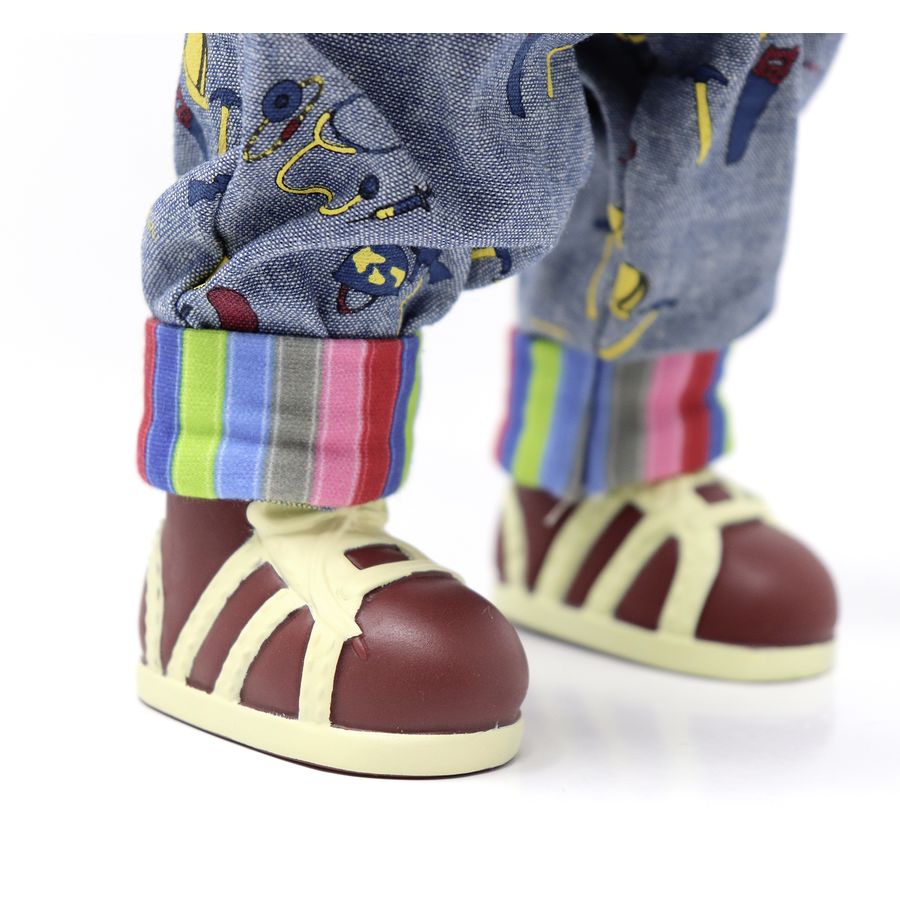 - Puppe mit Kleidung aus Stoff, orangerotem Haar, realistischen Glasaugen