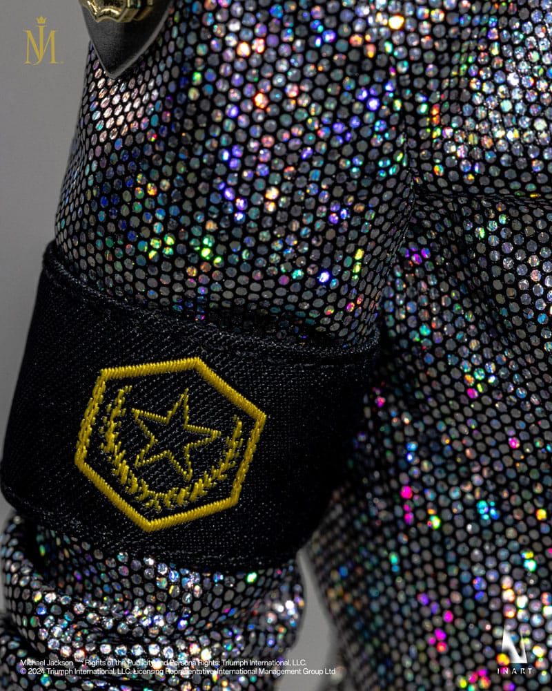 Der voll artikulierte Körper lässt sich flexibel in viele verschiedene Posen bringen. Das legendäre Michael Jackson Jam-Kostüm ist inklusive – bestehend aus schwarzem Outfit, Gürtel, Schulterriemen und passenden schwarzen Lederschuhen.