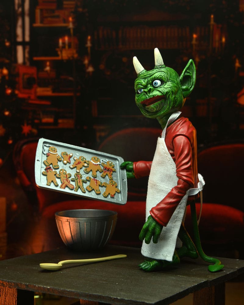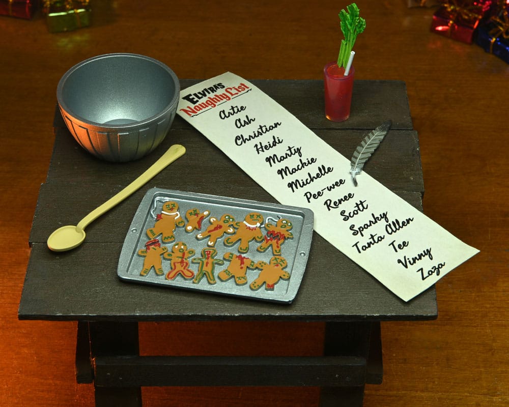 Besondere Merkmale: offiziell Lizenziert, voll beweglich, maßgeschneiderte Stoffkleidung, zwei austauschbare Gesichtsausdrücke, Zubehör wie Bloody Mary, "Naughty List" mit Federkiel, Tablett mit „Gingerdead Men“-Keksen, bewegliche Figur „Creature Who Was Stirring“ mit Schürze, Schüssel und Löffel, detailreich gestaltet