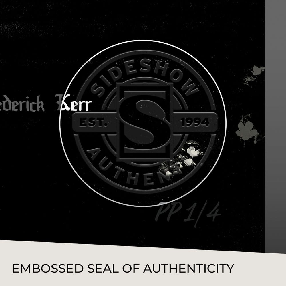 Der Frankenstein Movie Poster wird detailgetreu nach einer Originalzeichnung mit Graphit und Tinte reproduziert und ist in einer limitierten Auflage von nur 250 Exemplaren erhältlich. Jeder Druck ist mit einem geprägten Echtheitssiegel von Sideshow versehen und enthält eine automatisierte Signatur des Künstlers. Angeboten wird das Kunstwerk als ungerahmter Fine Art Print im Vollformat oder in einer optionalen, hochwertigen Rahmung mit archivfesten Materialien.