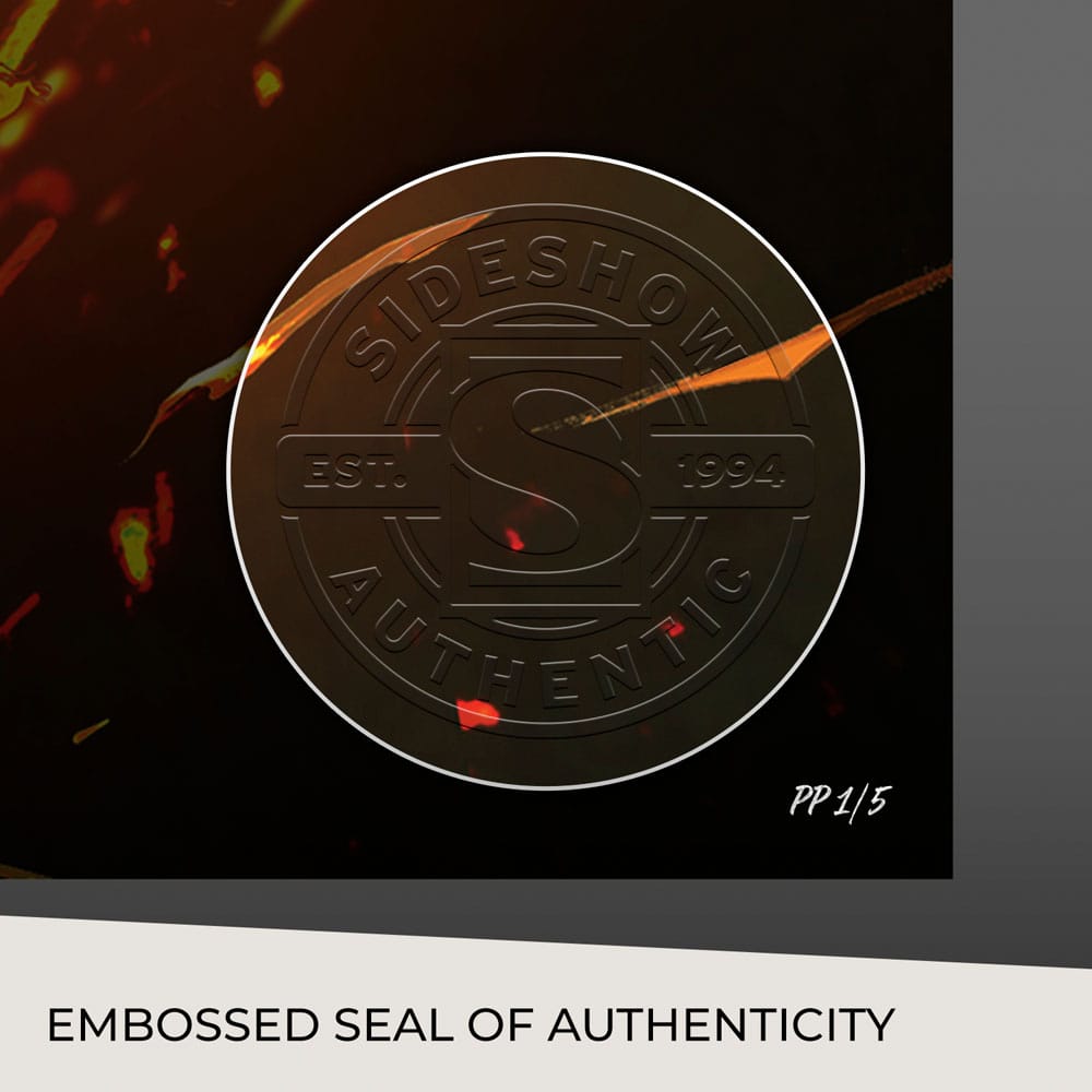 Dieses ausdrucksstarke Motiv wurde ursprünglich als Variant-Cover für Cosmic Ghost Rider #4 (2018) verwendet, geschrieben von Donny Cates für Marvel Comics. Nun ist diese düstere Illustration als hochwertiger Giclée-Druck erhältlich – entweder ungerahmt oder in einer individuell gerahmten Ausführung. Jedes Exemplar dieser limitierten Auflage enthält das geprägte Sideshow-Siegel zur Echtheitsgarantie.
