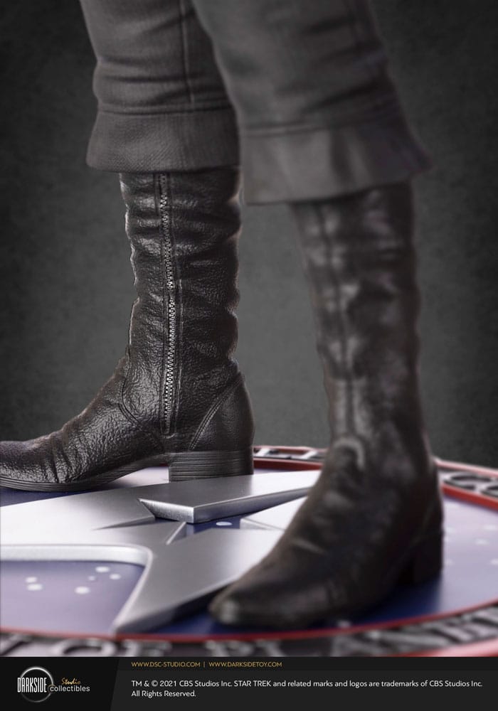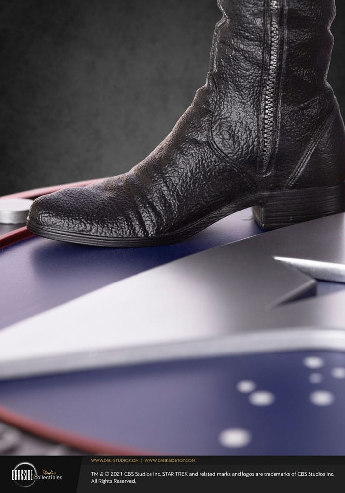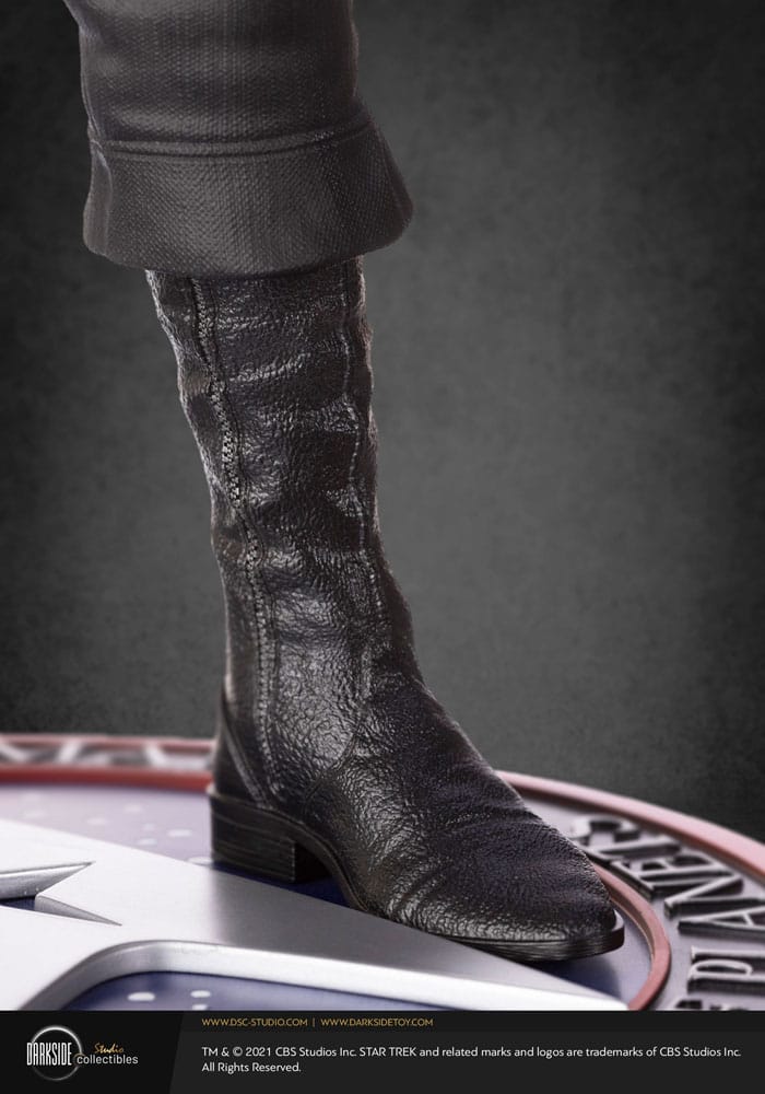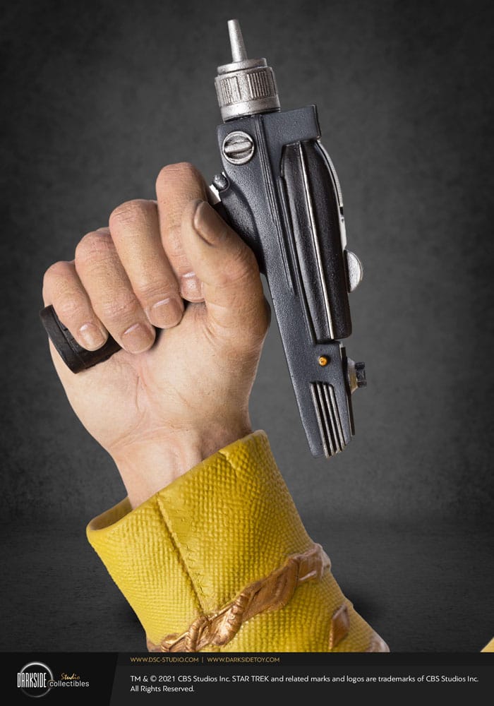 Mit einer beeindruckenden Ähnlichkeit zu William Shatner aus der Ära der Originalserie ist die Statue im eindrucksvollen 1/3-Maßstab gestaltet und zeigt ein authentisch detailliertes, modelliertes Captain-Kostüm. Wie ein „Weltraum-James-Bond der Zukunft“ fängt die Pose der Kirk-Statue die furchtlose, charmante und mutige Seite der Figur perfekt ein und präsentiert sich als beeindruckende, vollständig modellierte Statue mit einer Höhe von 64 cm.
