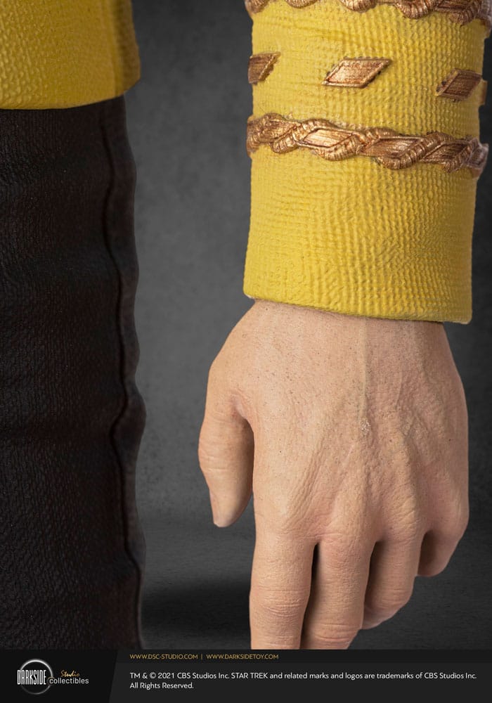 Besondere Merkmale: authentisch detaillierte, vollständig modellierte Statue, originalgetreue Ähnlichkeit mit William Shatner aus der Star Trek: The Original Series-Ära, handgefertigt, hyperrealistische lebensechte Hautdetails, streng limitierte Auflage, Teil der Captains of the USS Enterprise Collection, präsentiert den furchtlosen, charmanten und mutigen Charakter von Captain James T. Kirk